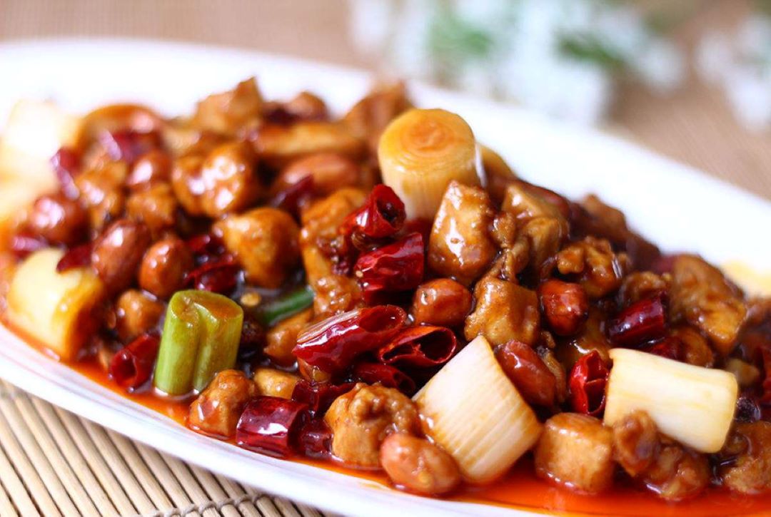宫保鸡丁是一道闻名中外的特色传统名菜,选用鸡肉为主料,佐以花生米、黄瓜、辣椒等辅料烹制而成。红而不辣、辣而不猛、香辣味浓、肉质滑脆。